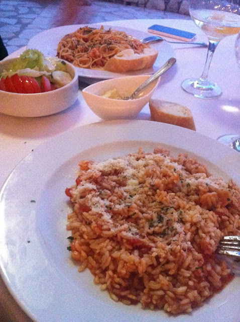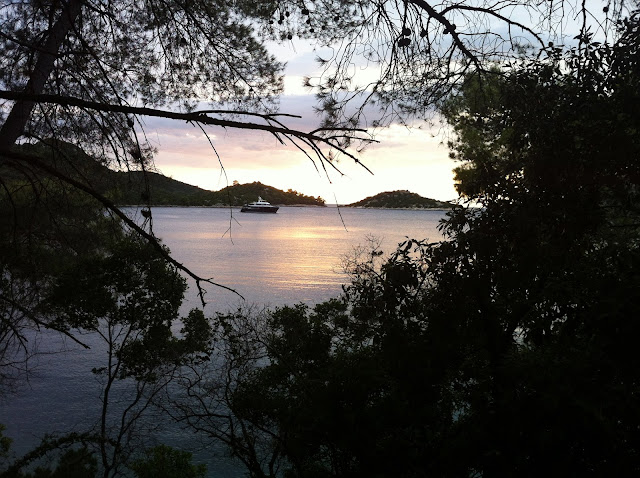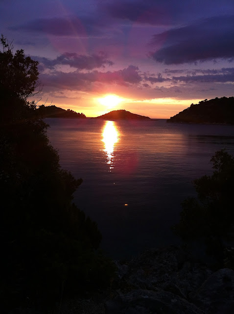 Nous avons été superbement accueillis à l’hôtel, où la gérante nous a même emmenés en vadrouille pour prendre le ferry ou faire les courses, s’est transformée en guide de choc en nous faisant découvrir des paysages à couper le souffle (même par notre seule journée de temps gris c’est pour dire), nous avons fait du jet ski pour la première fois, nous avons croisé un couple de retraités français (so chic) qui viennent passer 6 mois chaque année sur leur bateau à Lastovo (ils nous avaient invité pour l’apéro mais étrangement, nous ne les avons pas recroisés par la suite… Ils ont dû se faire dévorer par les requins, je ne vois pas d’autre explication… Triste sort, c’est moins chic), nous avons mangé le meilleur risotto crevettes champignons dans un petit resto (même si Dave commençait à pousser la chansonnette à partir de 22h, ça restait sympathique), nous avons eu les petits dej les plus copieux de tout le pays ( même si les abeilles commençaient à nous chasser à la deuxième tranche de pain, ou d’omelette, ou de bacon), nous nous sommes perdus sur des sentiers au milieu des cigales, vue directe sur la mer, au coucher du soleil, à prendre tellement de photos en touristes que nous nous sommes faits rattraper par l’orage, nous avons redécouverts les étoiles comme on ne les voit plus en région parisienne, c’est à dire, sans aucunes lumières aux alentours (j’ai même vu des satellites pour la première fois :D), bref nous avons pris le temps de vivre… Et ça fait du bien !!!!